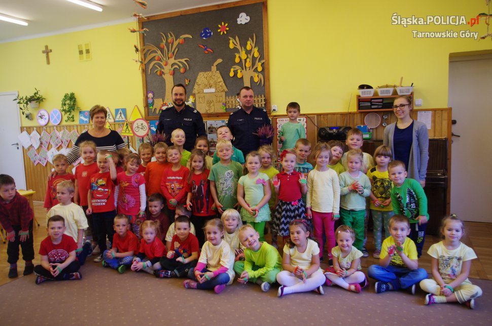 Jak co rok dzielnicowi odwiedzili Przedszkole „Słoneczna 18” w Rybnej. Podczas spotkania stróże prawa uczyli dzieci, jak należy się zachowywać w różnego rodzaju nagłych sytuacjach w domu, w przedszkolu i na ulicy. Policjanci opowiedzieli także, jak wygląda praca policjantów. Mundurowi mówili o tym, jak należy się zachować w przypadku ataku przez psa. Główną atrakcją spotkania była policyjna maskotka Sznupek. Każde dziecko mogło się do niego przytulić i przybić mu tzw”piątkę”. Całe spotkanie zostało uwiecznione na pamiątkowych fotografiach.