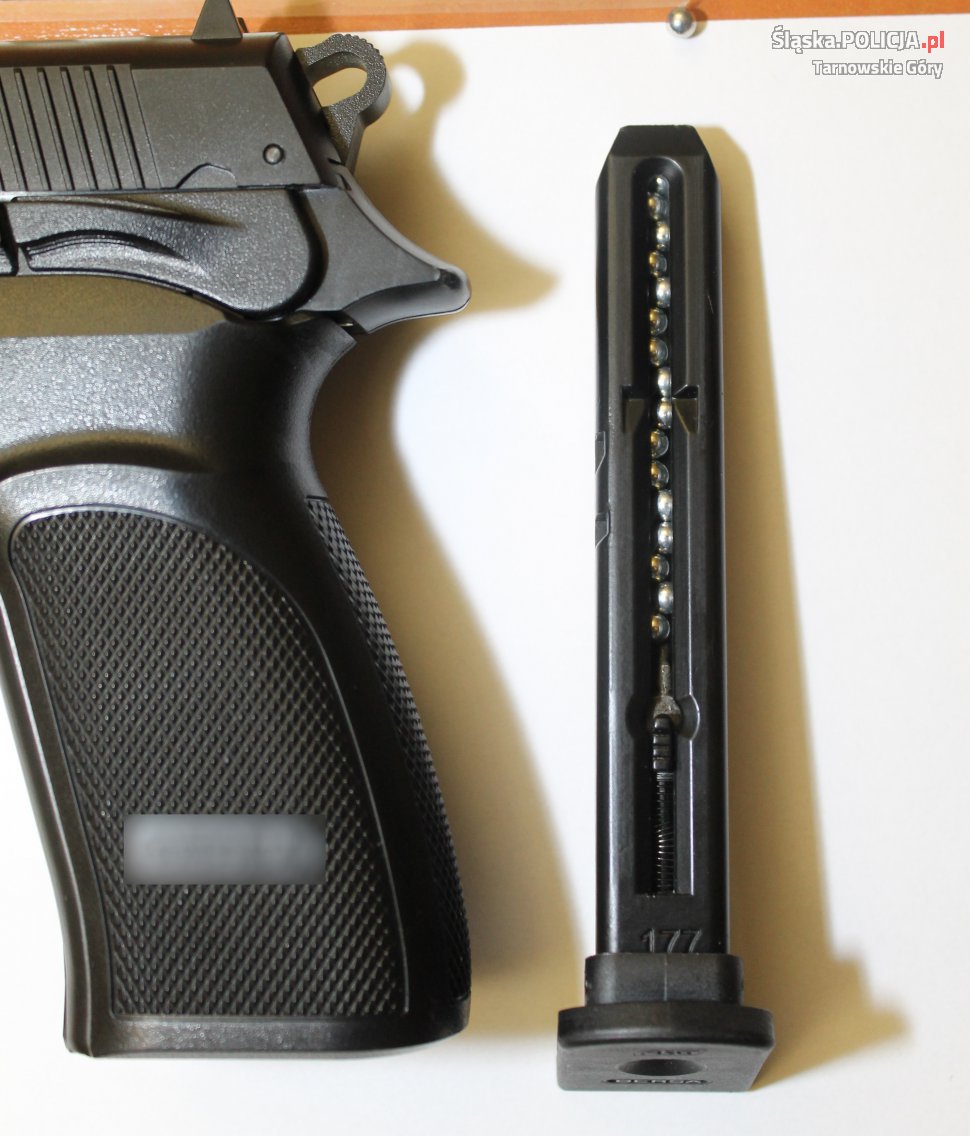 Do zdarzenia doszło w miniony poniedziałek tuż przed godziną 22:00. Dyżurny tarnogórskiej komendy otrzymał zgłoszenie, że kierowca golfa wyciągnął przedmiot przypominający pistolet i strzela w kierunku innego pojazdu. Do akcji natychmiast ruszyli tarnogórscy wywiadowcy. Policjanci długo nie musieli szukać pojazdów ze zgłoszenia, bo chwilę później zatrzymały się tuż przed komendą. Okazało się, że 36-latek wcześniej rozstał się ze swoją konkubiną, a w tym dniu przyjechał do niej wyjaśnić niedokończone sprawy. Pomiędzy byłymi partnerami i nowym partnerem kobiety wywiązała się kłótnia. Piekarzanin nie wytrzymał panującej atmosfery i najpierw staranował pojazd konkubiny, a następnie jako argumentu w rozmowie postanowił użyć noża, a później pistoletu. Wystraszona kobieta wraz z nowym partnerem wsiedła do forda i zaczęli uciekać przed agresorem, który ich gonił. Jazda zakończyła się przed budynkiem policji, gdzie 36-latek został zatrzymany. Mężczyzna próbował ukryć narzędzie przestępstwa i wrzucił pistolet pneumatyczny pod swój samochód. Nie zmyliło to policjantów, którzy odnaleźli "zgubę". Mężczyzna noc spędził w policyjnym areszcie. Usłyszał już zarzuty gróźb karalnych oraz narażenia na bezpośrednie niebezpieczeństwo utraty życia albo ciężkiego uszczerbku na zdrowiu. Wczoraj prokurator zastosował wobec niego policyjny dozór. Piekarzanin może spędzić w więzieniu nawet 3 lata.
