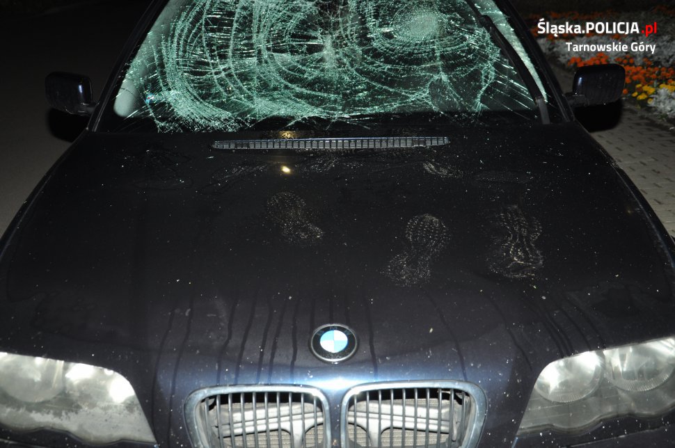 W sobotę o godzinie 01:00 w nocy dyżurny policji otrzymał informację, że na ulicy Cmentarnej w Radzionkowie mężczyzna skacze po samochodach. Policjanci na miejscu zobaczyli zaparkowany samochód marki BMW, który miał doszczętnie rozbitą przednią szybę i wgniecioną maskę. Na karoserii wandal zostawił liczne odciski butów. Sprawca zdążył uciec przed przyjazdem mundurowych. Policjanci podjęli poszukiwania za wandalem. Funkcjonariusze ustalili świadka zdarzenia oraz uzyskali informację, które pomogły dotrzeć do sprawcy tego czynu. Sprawcą zniszczenia okazał się 23-latek z Bytomia. Jak ustalili policjanci, mężczyzna podczas imprezy zakrapianej alkoholem pokłócił się ze swoją dziewczyną. Następnie postanowił dać upust swoim emocjom i zaczął skakać po zaparkowanym pojeździe, który stał nieopodal. Mężczyzna przyznał się do zniszczenia pojazdu i odpowie teraz za przestępstwo zniszczenia mienia za co grozi do 5 lat więzienia.