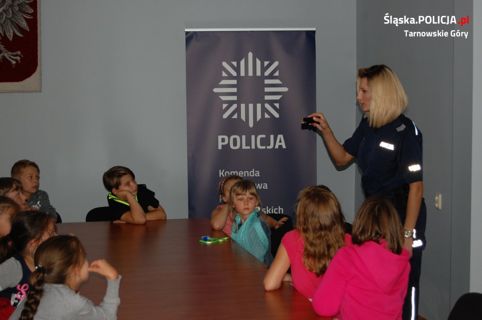 W ramach akcji, grupa dzieci wraz z opiekunami ze Szkoły Podstawowej nr 9 w Tarnowskich Górach przekroczyła próg komendy. Dzieci zostały przywitane przez sierż. szt. Magdalenę Kilanowską oraz asp. szt. Adama Cichowskiego. Najważniejszym celem spotkania było to aby dzieci poznały zasady “Jak być bezpiecznym”. Policjanci uświadomili dzieciom, jakie niebezpieczeństwa w życiu codziennym mogą je spotkać i jak się przed nimi uchronić. W ramach kampanii, mundurowi poinformowali uczestników spotkania również o podstawowych zasadach bezpieczeństwa podczas drogi do szkoły. Policjanci przypomnieli, że przechodzić przez jezdnię należy tylko w miejscach do tego wyznaczonych, po uprzednim upewnieniu się, że z żadnej strony nie nadjeżdża pojazd. Stróże prawa uczestników spotkania zapoznali także z zasadami poruszania się po chodnikach i ścieżkach pieszo-rowerowych. Z uwagi na zbliżającą się porę jesienno-zimową, policjanci zachęcali też do noszenia odblasków.
