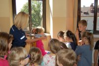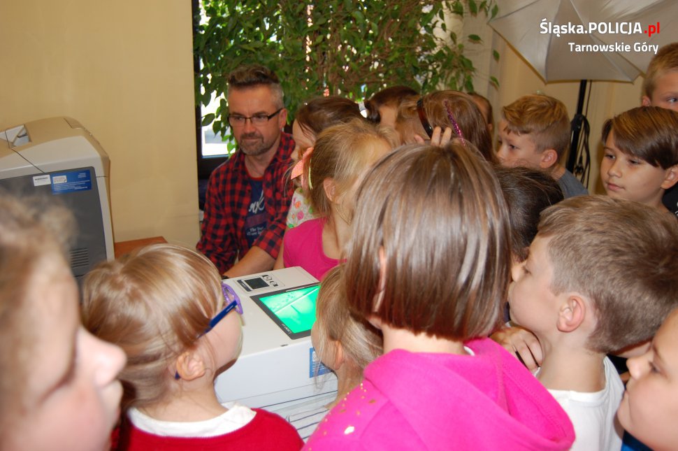 Policjantów pracujących w tarnogórskiej policji nie trzeba było informować o tej wizycie, ponieważ, gdy dzieci pojawiły się na korytarzach, robiło się głośno i słychać było dużo śmiechu. Milusińscy byli ciekawi wszystkiego i zawsze chętnie rozmawiali z policjantami na temat ich pracy. Dzieci zwiedziły pomieszczenie dla osób zatrzymanych, pokój okazań a także spotkały się z technikiem kryminalistyki, który opowiedział im jak pobiera się odciski palców. Wizyta w komendzie przebiegła w miłej atmosferze, a dzieci były bardzo zadowolone z możliwości odwiedzenia policjantów.
