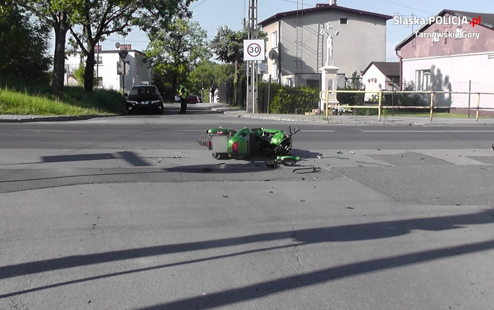 Wczoraj przed godziną 8.00 policjanci z ruchu drogowego tarnogórskiej komendy zostali wezwani na ulicę Radzionkowską w Tarnowskich Górach, gdzie doszło do wypadku drogowego. Ze wstępnych ustaleń mundurowych wynika, że 40-letnia kierująca hondą, nie udzieliła pierwszeństwa przejazdu i zderzyła się z jadącym motocyklistą. Następnie kierowca jednośladu utracił panowanie nad pojazdem i uderzył w renaulta. W wyniku tego zdarzenia, do szpitala z ogólnymi obrażeniami ciała został przewieziony 47-letni kierujący jednośladem. Tarnogórscy śledczy wyjaśniają teraz dokładne przyczyny i okoliczności wypadku.