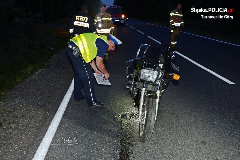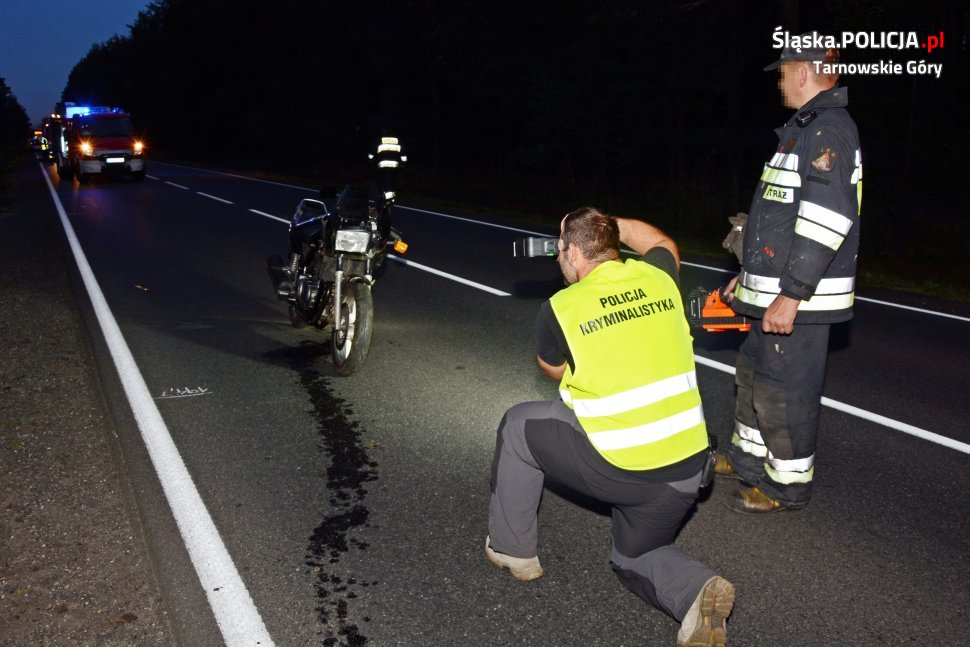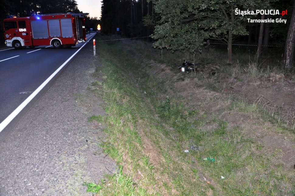 Do śmiertelnego wypadku doszło po 15.00 na drodze krajowej nr 11 pomiędzy Tarnowskimi Górami a Tworogiem. Ze wstępnych ustaleń policjantów wynika, że 46-letni motocyklista uderzył w przebiegającą przez jezdnię sarnę, stracił panowanie nad kierownicą i zjechał do przydrożnego rowu. Kierujący motocyklem oraz jego 30-letnia pasażerka spadli z jednośladu, a motor pojechał dalej, koziołkując kilkadziesiąt metrów dalej. W wyniku doznanych obrażeń kierowca jednośladu oraz jego pasażerka zginęli. Na miejscu wypadku, pod nadzorem prokuratora, pracowali tarnogórscy policjanci oraz strażacy. Droga przez kilka godzin była całkowicie zablokowana.