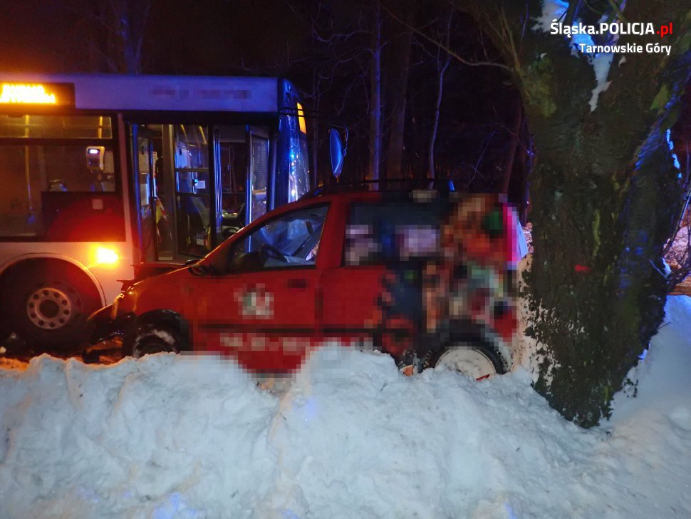 Wczoraj po godzinie 19.00 policjanci z drogówki zostali wezwani na ulicę Wyszyńskiego w Tarnowskich Górach, gdzie doszło do wypadku. Ze wstępnych ustaleń mundurowych wynika, że 22-letni kierowca samochodu osobowego marki Fiat Panda, stracił panowanie nad pojazdem, zjechał na przeciwległy pas ruchu i zderzył się czołowo z autobusem komunikacji miejskiej.