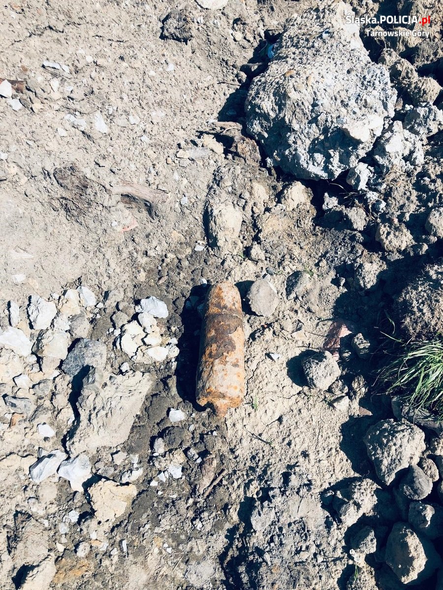 Pracownik firmy budowlanej, w trakcie wykonywania prac ziemnych ujawnił niewybuch. Pochodzący z okresu II wojny światowej pocisk przeciwpancerny zabezpieczyli policjanci. Niebezpieczne znalezisko zostało zabrane przez patrol saperski z Gliwic.
