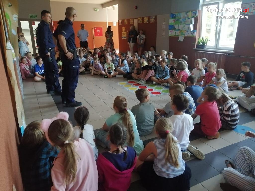Końcówka roku szkolnego, to doskonała okazja, aby odświeżyć zasady bezpieczeństwa w trakcie wakacji. Tym razem do szkoły podstawowej w Świerklańcu udali się dzielnicowi z Radzionkowa, którzy przypomnieli uczniom, jak bezpiecznie spędzić wakacyjny okres.