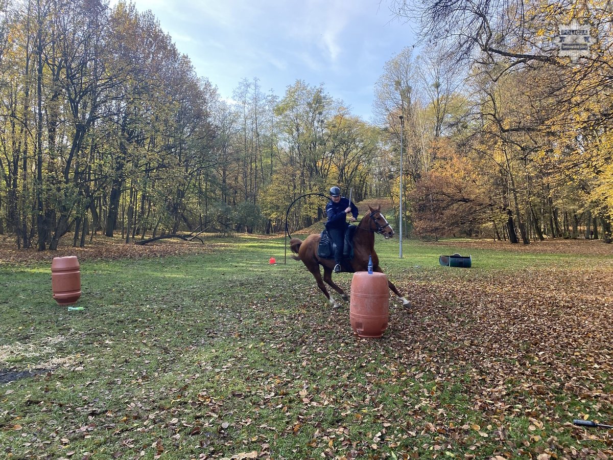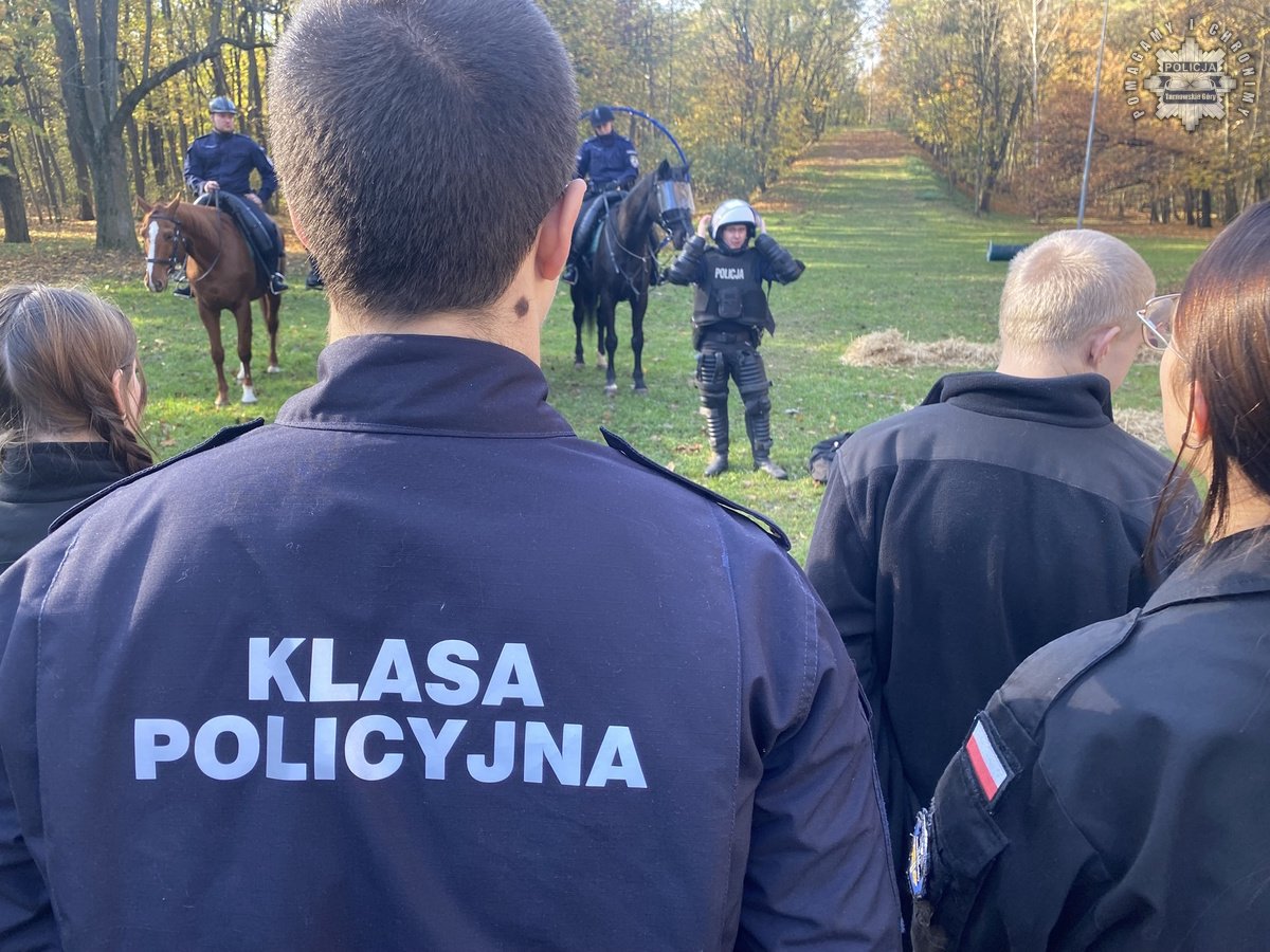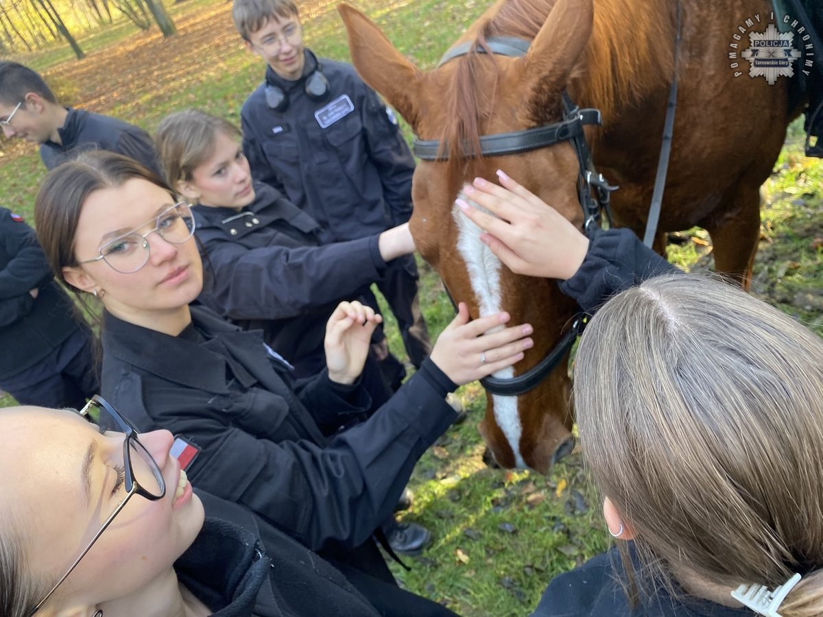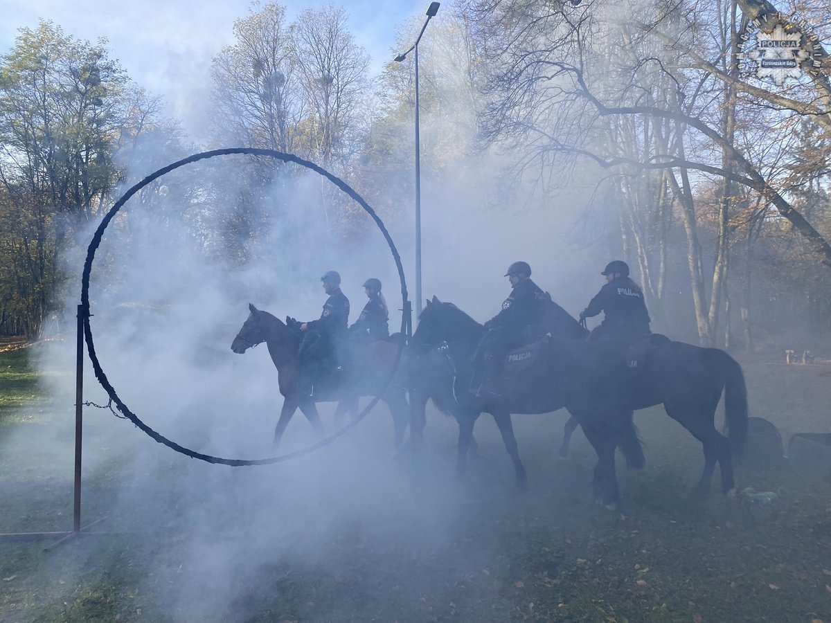 Mundurowi z ogniwa konnego zaprezentowali młodzieży swoje umiejętności, które na co dzień wykorzystują w służbie patrolowej, ale także w trakcie zabezpieczania licznych wydarzeń sportowych i rozrywkowych. Oprócz formowania odpowiednich szyków, jeźdźcy zaprezentowali pokonywanie przeszkód, reakcję koni na ogień i materiały pirotechniczne, a także ich zachowanie w trudnych warunkach.