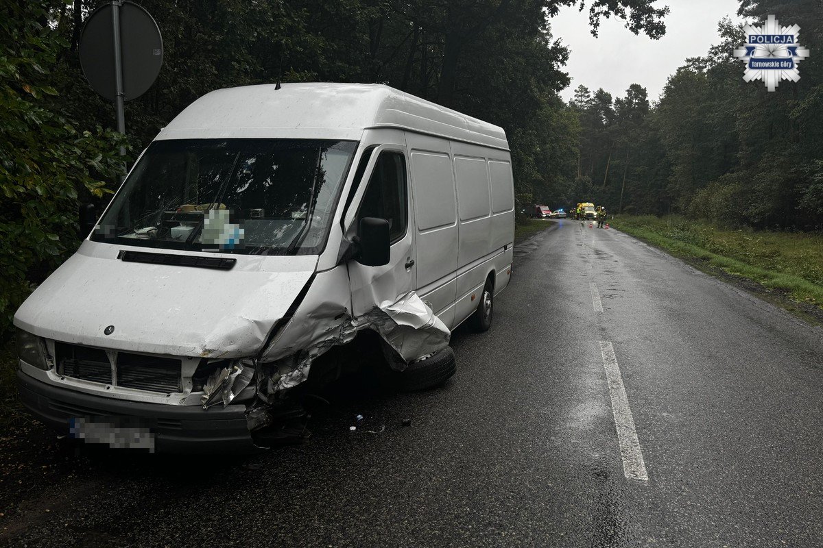 Do zdarzenia doszło po godzinie 7.30 na leśnym odcinku drogi pomiędzy Połomią a Brynkiem. Pracujący na miejscu zdarzenia policjanci z drogówki wstępnie ustalili, że kierujący dostawczym mercedesem, 46-latek z Bielska-Białej, na łuku drogi wykonał nieprawidłowy manewr wymijania i zderzył się z toyotą, za której kierownicą siedział 42-latek z Dąbrowy Górniczej. Po kontakcie pojazdów toyota wjechała do przydrożnego rowu, a jej kierujący został zabrany do szpitala na dalsze badania. Oboje kierujący byli trzeźwi.
