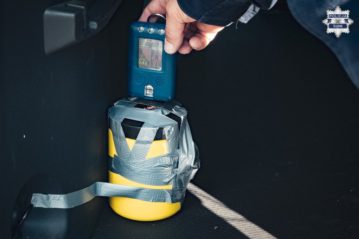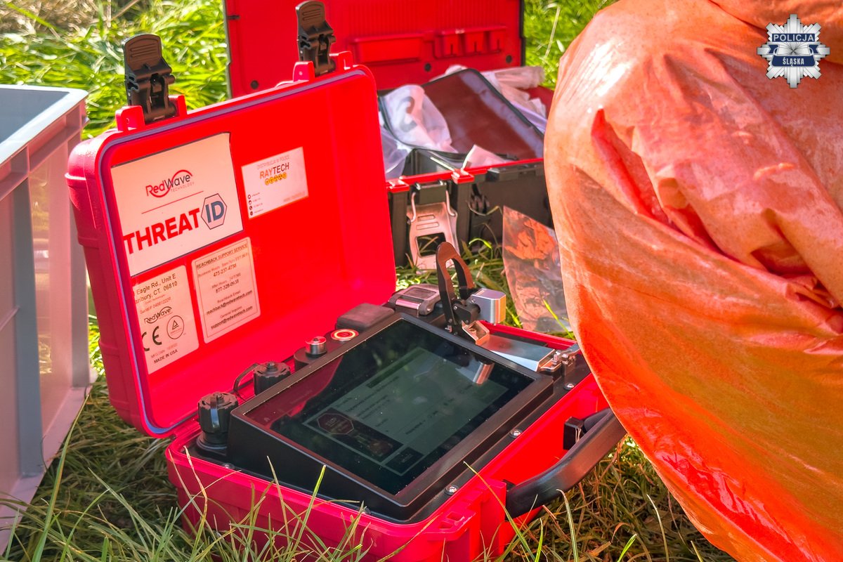 Następnie policjanci NGRMP, zabezpieczyli miejsce ujawnienia podejrzanego urządzenia i dokonali rozpoznania za pomocą psa do wyszukiwania zapachów materiałów wybuchowych oraz użyli dozymetru aby potwierdzić promieniowanie. Po czynnościach do akcji wkroczyli policjanci Sekcji Minersko Pirotechniczej Samodzielnego Pododdziału Kontrterrorystycznego Policji w Katowicach oraz Specjalistyczna Grupa Ratownictwa Chemiczno – Ekologicznego z Jednostki Ratowniczo Gaśniczej II Katowice Piotrowice, którzy przy pomocy wszelkich dostępnych środków doprowadzili do zabezpieczenia i neutralizacji zagrożenia.