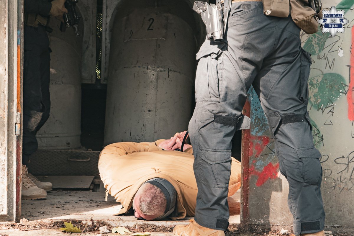 Policjanci, wykorzystując drona potwierdzili, że mężczyzna posiadał przy sobie przedmiot przypominający broń, a rozpoznanie porzuconego przez niego drona wykazało obecność niebezpiecznej substancji chemicznej. Na miejsce skierowano funkcjonariuszy SPKP Katowice. W trakcie przygotowań mężczyzna, który ukrył się w kopalni, groził użyciem broni. Funkcjonariusze Samodzielnego Pododdziału Kontrterrorystycznego Policji przeprowadzili szturm, w wyniku którego zatrzymali mężczyznę.