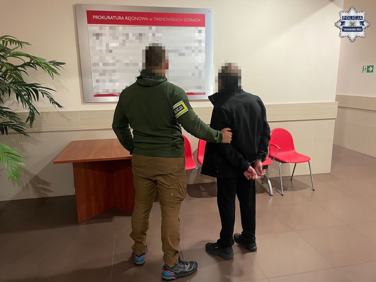 Gdy to poważnie brzmiące zgłoszenie wpłynęło do policjantów, dyżurny od razu skierował na miejsce patrole z Kalet i Tarnowskich Gór, a także policyjnych wywiadowców. Po przybyciu na miejsce mundurowi, wewnątrz jednego z domów zastali 40-letnią kobietę, która opowiedziała im, że w trakcie zakrapianej alkoholem partii w karty, jej konkubent wpadł w szał. Jak dodała, wywrócił ją na ziemię i zaczął ją kopać w różne części ciała, a na sam koniec oblał ją benzyną i groził jej podpaleniem.