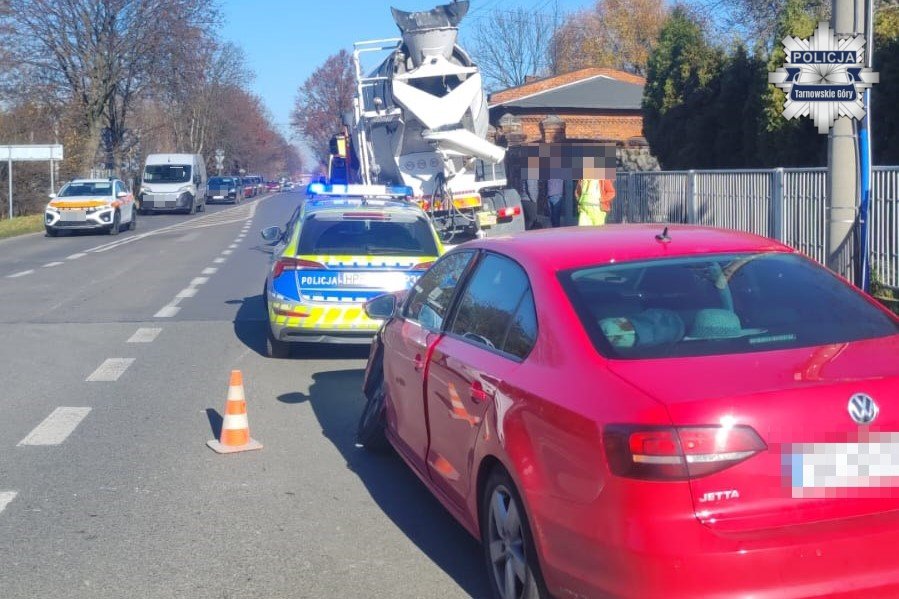 Do zdarzenia doszło chwilę po godzinie 12.00 na ulicy Gliwickiej w Tarnowskich Górach. Pracujący na miejscu zdarzenia policjanci ustalili, że 72-letnia mieszkanka Katowic podczas włączania się do ruchu swoim volkswagenem, doprowadziła do zderzenia z ciężarowym volvo, za którego kierownicą siedział 59-latek z Bytomia.