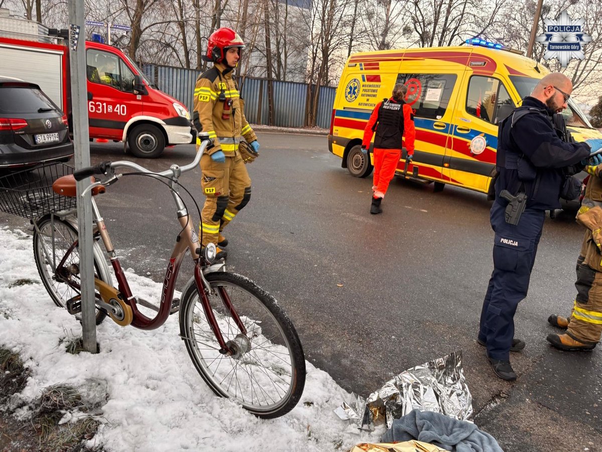 Do zdarzenia doszło po godzinie 7.00 na skrzyżowaniu ulicy Kościelnej z Armii Krajowej w Tarnowskich Górach. Pracujący na miejscu policjanci ustalili, że w wyniku kontaktu z osobową dacią, która kierowała 62-letnia tarnogórzanka, ucierpiał 83-letni tarnogórzanin, który podróżował na rowerze.