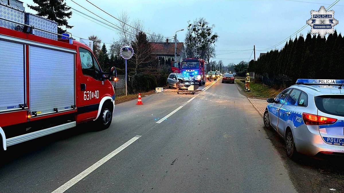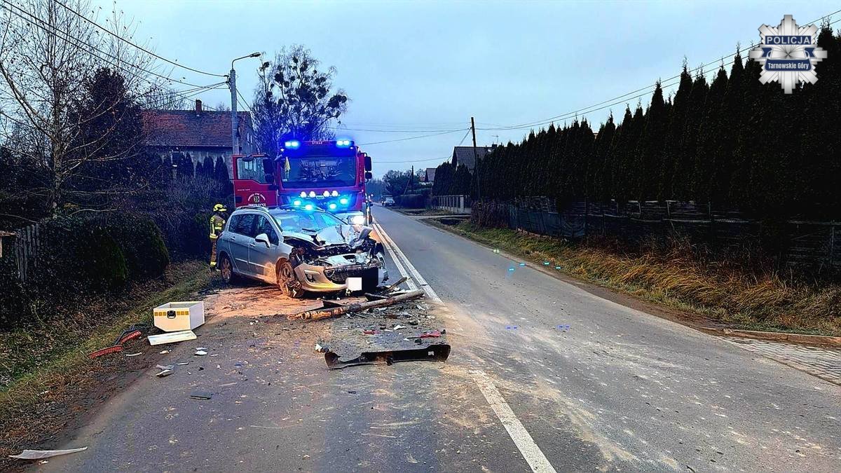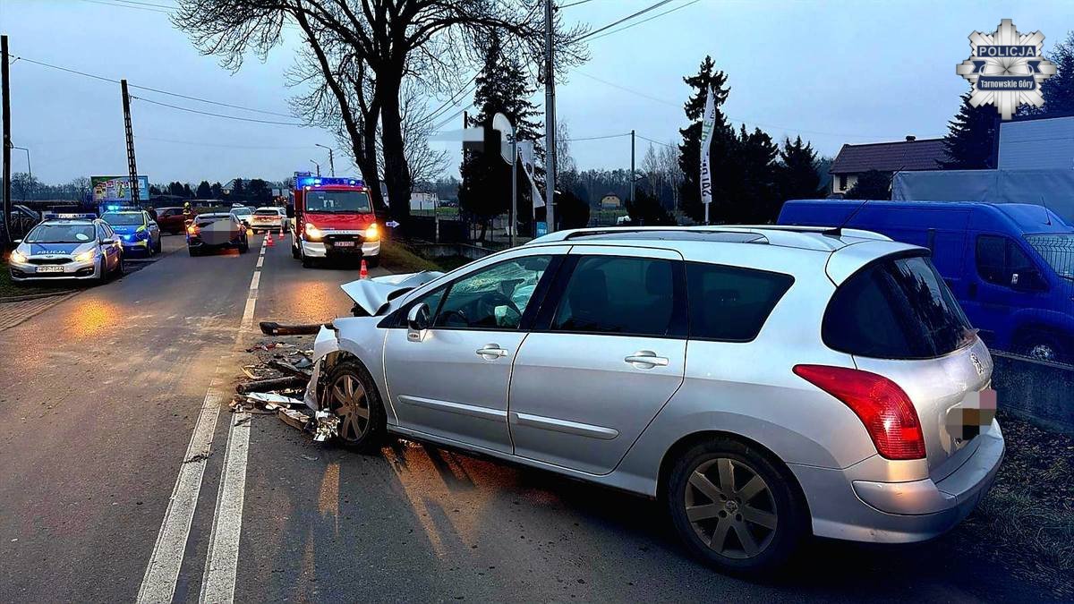Do zdarzenia doszło na ulicy Wolności w Zbrosławicach przed godziną 15.00. Pracujący na miejscu policjanci ustalili, że kierująca peugeotem, 45-letnia mieszkanka Gliwic nie dostosowała prędkości do warunków panujących na jezdni i uderzyła w tył ciężarowej scanii, której kierujący, 67-letni tarnogórzanin, wykonywał manewr skrętu w lewo.