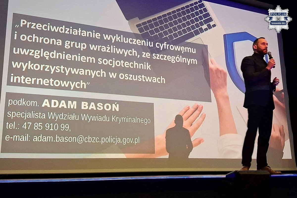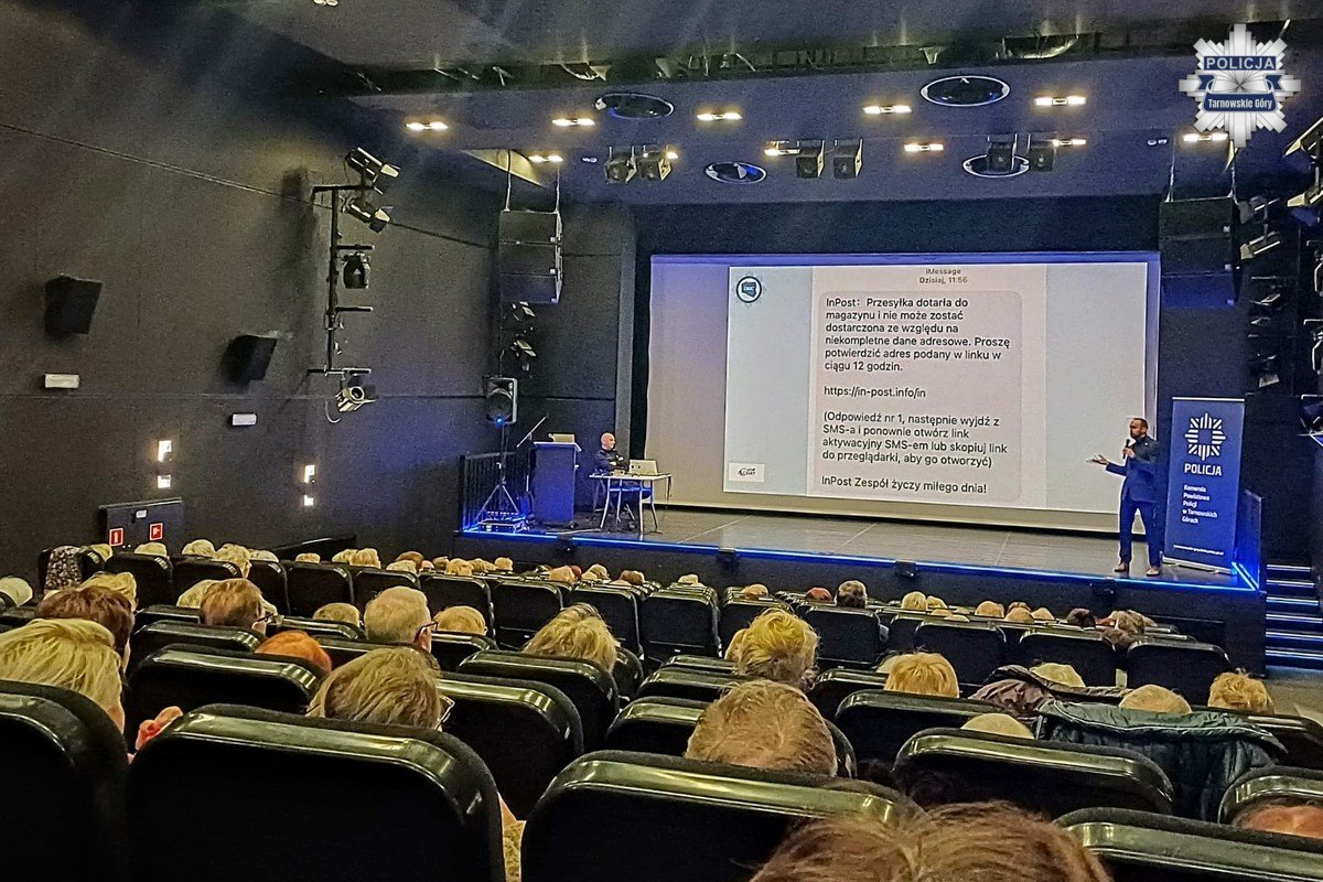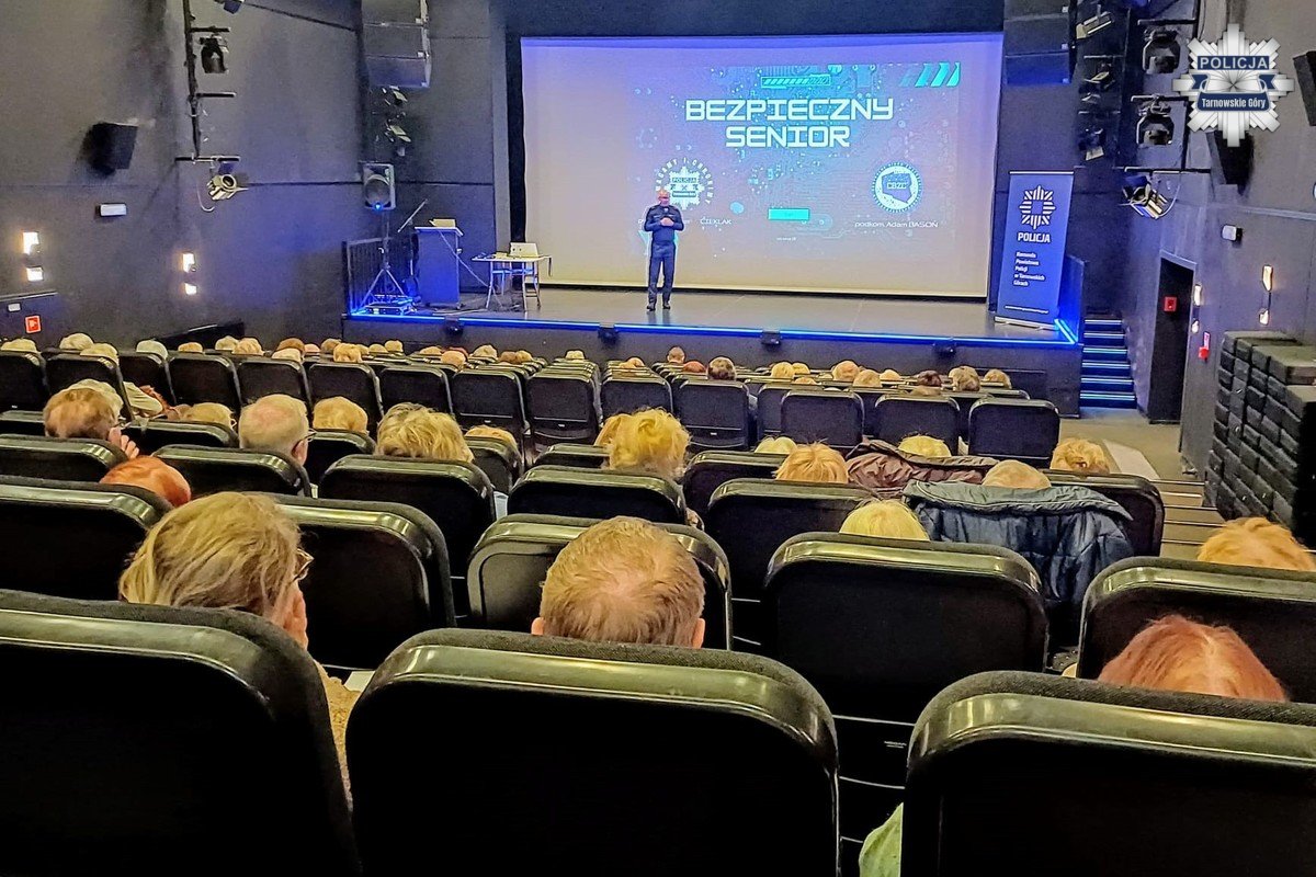 W poniedziałkowe popołudnie, wypełniona po brzegi sala widowiskowa Tarnogórskiego Centrum Kultury, gościła policjantów i seniorów z Uniwersytetu Trzeciego Wieku, gdzie odbyła się bardzo ważna debata społeczna poświęcona bezpieczeństwu w sieci. Seniorzy dowiedzieli się, na jakie zagrożenia mogą trafić w internecie oraz otrzymali wskazówki, jak nie paść ofiarą oszustwa.