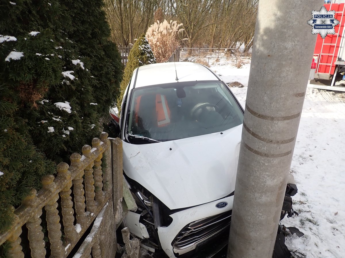 Do zdarzenia doszło w ubiegły piątek po godzinie 12.00 na ulicy Repeckiej w Tarnowskich Górach. Pracujący na miejscu policjanci z drogówki ustalili, że 27-letni mieszkaniec Zabrza, jadąc Fordem w kierunku ulicy Witosa, w wyniku źle dostosowanej prędkości pojazdu na łuku drogi wpadł w poślizg i zakończył podróż na przydrożnym słupie. Staranował także część ogrodzenia posesji.
