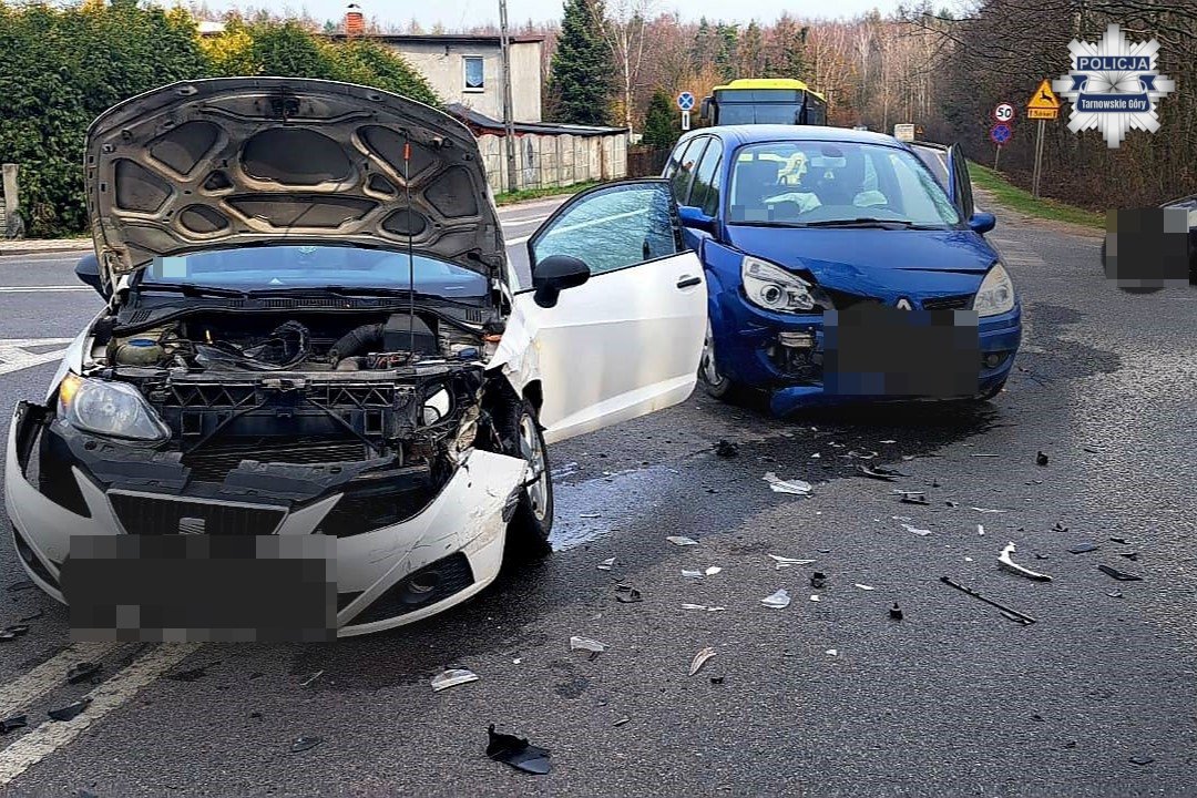Zgłoszenie o zderzeniu dwóch samochodów osobowych na skrzyżowaniu ulicy Obwodowej z Siewierską w Tarnowskich Górach wpłynęło do policjantów przed godziną 8.00. Pracujący na miejscu zdarzenia policjanci ustalili, że kierująca Seatem, 28-letnia mieszkanka Tarnowskich Gór, nie ustąpiła pierwszeństwa przejazdu i najechała na prawidłowo jadący pojazd Renault, którym kierował 35-letni mieszkaniec Miasteczka Śląskiego.
