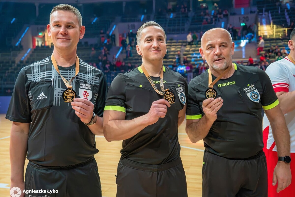 W ubiegły weekend aspirant Czudaj miał niebywałą okazję poprowadzenia spotkania legend w gliwickiej arenie. Na parkiecie naprzeciw siebie stanęły drużyny reprezentacji Polski i Brazylii, w której wystąpił Alessandro Rosa Vieira, bliżej znany jako Falcão - najbardziej utytułowany futsalista na świecie.